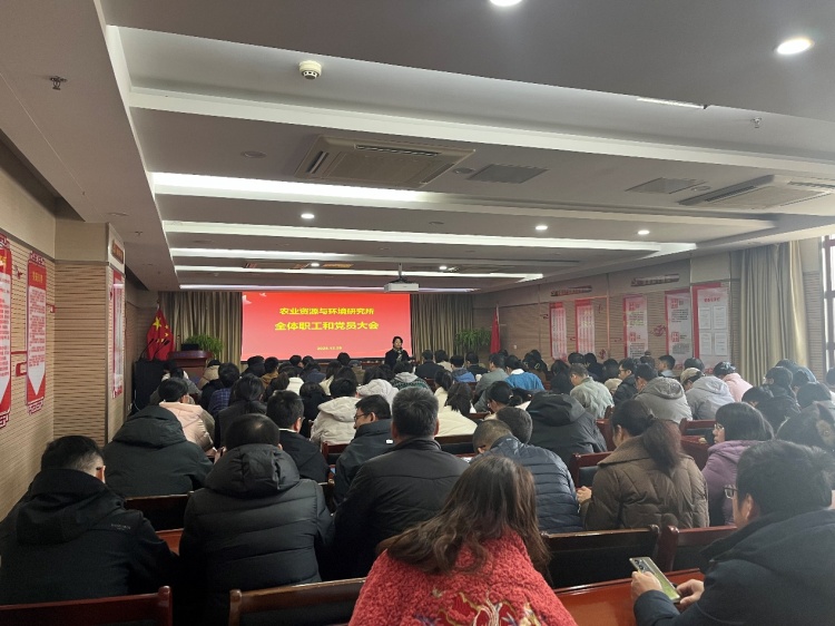 近期,资环所党总支组织召开全体党员及职工大会,深入学习贯彻党的二十届四中全会精神,传达学习习近平总书记在中央经济工作会议上重要讲话精神、院精神文明建设表彰大会精神等。党总支书记马艳主持会议,全体党员职工120余人参加会议。
