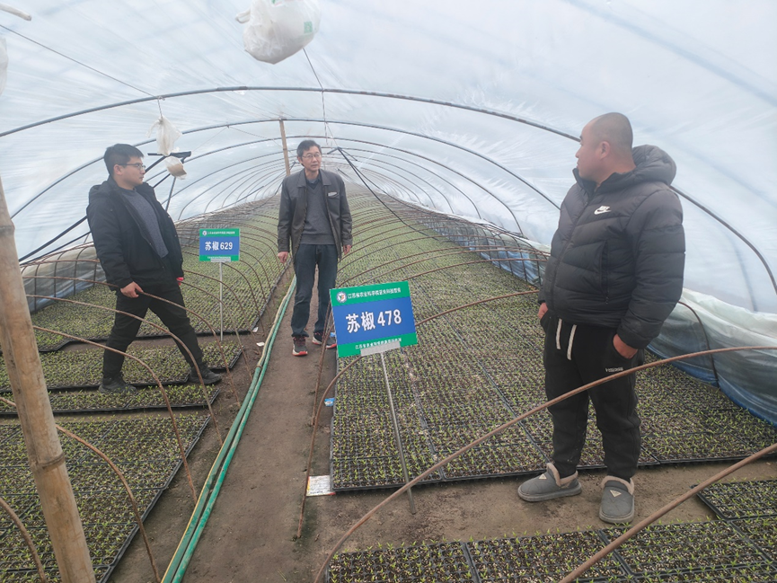 1月18-19日,亚夫科技服务沭阳钱集工作站站长、蔬菜所辣椒创新团队刘金兵研究员和龚成胜博士赴沭阳县、淮阴区蔬菜产区开展亚夫科技服务,指导冬季辣椒育苗和越冬茬辣椒等蔬菜生产。
