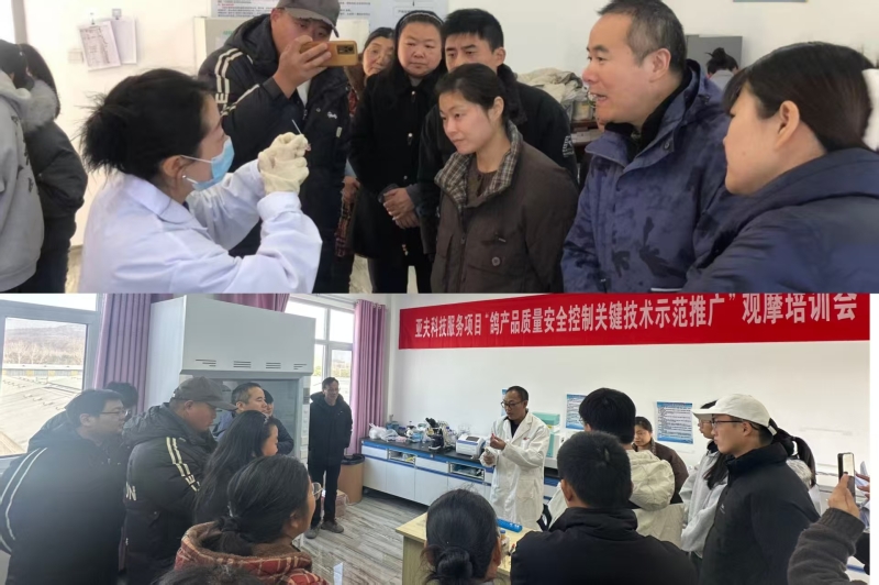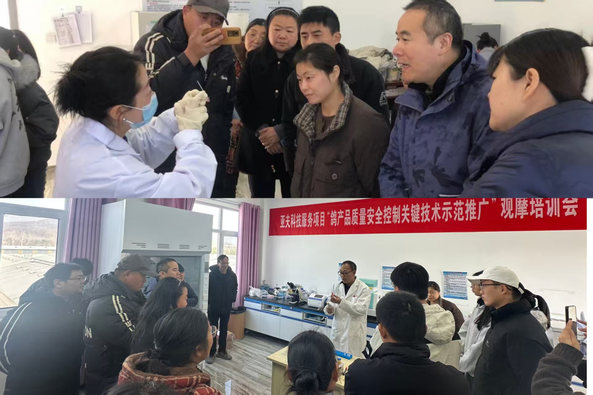 观摩会上,我院免疫所于漾副研究员演示了鸽疫苗抗体水平检测技术,只需0.3毫升血液样本,就能精准判断鸽群免疫效果,养殖户利用该技术可建立免疫程序,避免盲目防疫,从根源降低疫病风险。我院质量安全所龚兰博士演示了蛋中药物残留速测技术,将处理后的鸽蛋样本滴入试剂盒,15分钟后,试纸条便显现清晰结果,该技术操作简便、无需复杂设备,普通养鸽户一学就会,便于其自行做好产品的质量安全快速筛查预警。