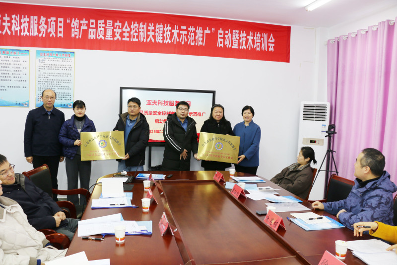 2025年12月28日,亚夫科技服务项目“鸽产品质量安全控制关键技术示范推广”启动会暨培训会在南京东晨鸽业有限公司成功举办。我院副院长王冉、成果转化处处长顾军出席会议,我院质量安全所、省畜牧总站及六合区、江宁区农业农村局、东晨鸽业、翠谷鸽业相关专家及负责人,周边养殖企业负责人、农户代表等参加会议。我院质量安全所副所长徐剑宏研究员主持会议。本次会议分为项目启动、现场观摩、技术培训三个环节,聚焦鸽产品质量安全,为鸽业高质量发展注入新动力。