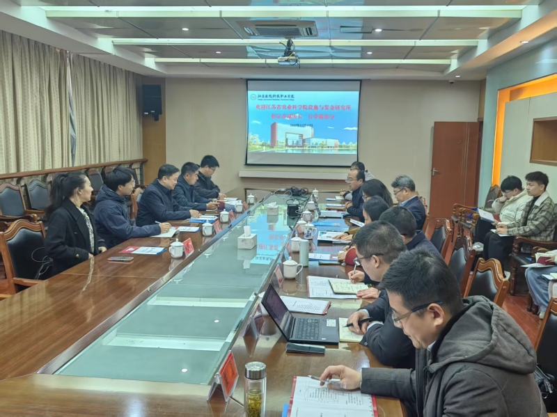 为积极响应国家关于推动畜牧业现代化与高质量发展的战略部署,助力畜禽养殖业绿色发展与数字化转型升级,12月17日,江苏省设施水禽健康养殖装备工程研究中心常务副主任、装备所副所长、养殖环境工程与装备创新团队首席柏宗春及团队成员一行5人赴江苏农牧科技职业学院开展专题调研交流。双方围绕畜禽高效养殖技术与智能装备研发需求进行深入探讨,旨在进一步深化合作,共同推动产业智能化升级。江苏农牧科技职业学院党委书记朱善元、党委副书记郑义、智能制造学院院长翟旭军及相关教师代表参加座谈。