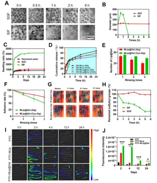 研究结果显示,该递送系统具备优异的pH响应释放特性,在pH1.2的模拟胃液中可保持微球结构稳定,2小时内抗原累计释放量低于15%,有效避免胃酸对抗原的降解破坏;而在pH≥6.8的模拟肠液中可快速溶胀崩解,实现抗原在肠道部位的精准靶向释放(图2)。