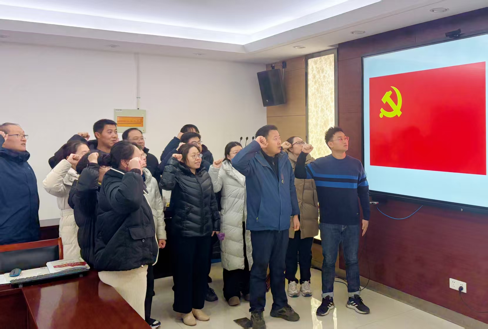 会议期间,还传达学习了部分重要文件精神,观看了党史学习教育《无声的功勋》视频。 第一党支部组织了预备党员入党宣誓仪式暨党员重温入党誓词活动。
