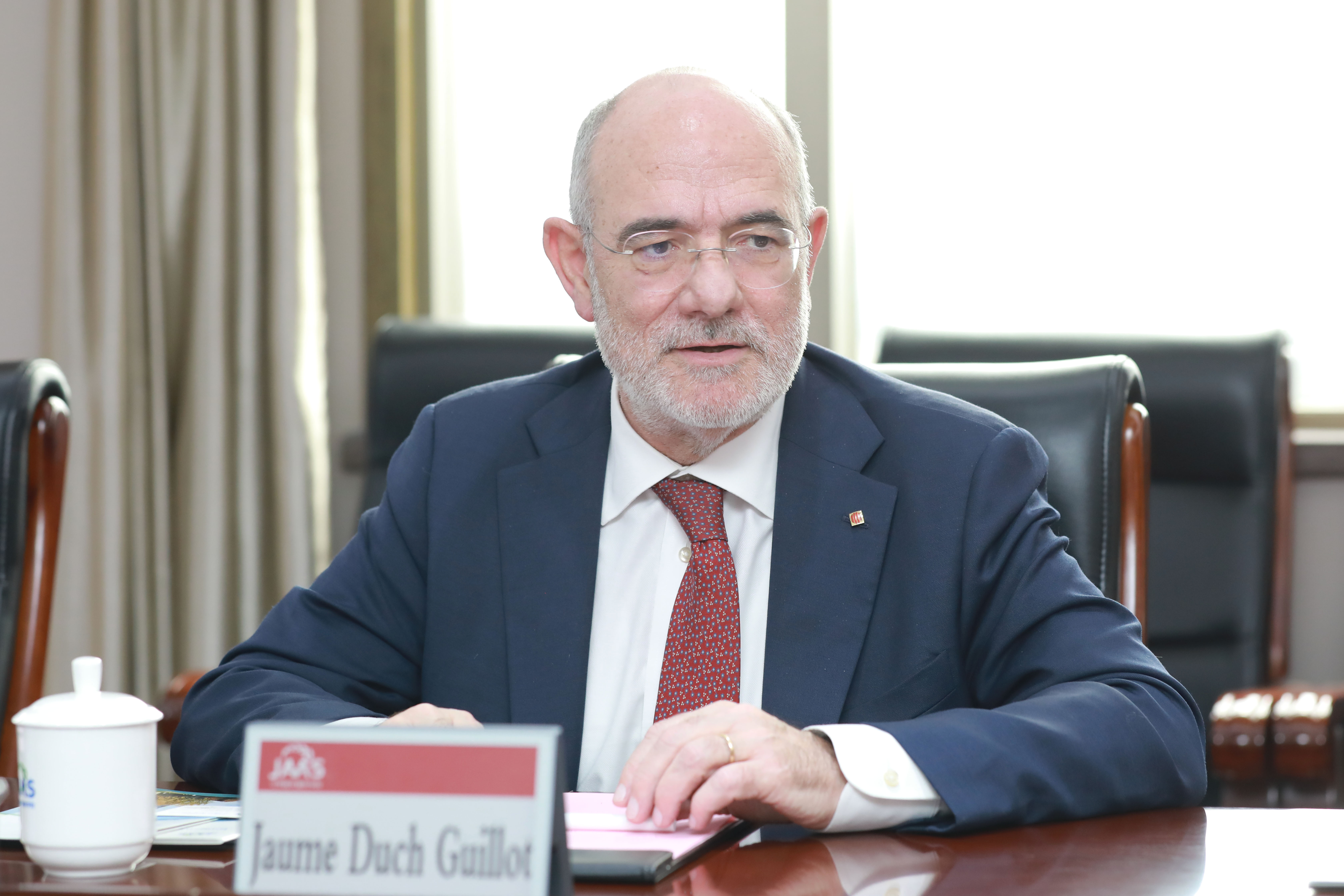 3月27日,西班牙加泰罗尼亚自治区欧盟与对外事务部长豪梅・杜奇(Jaume Duch Guillot)率团到访我院,院长、党委副书记朱艳主持接待,党委委员、副院长王冉参加接待。