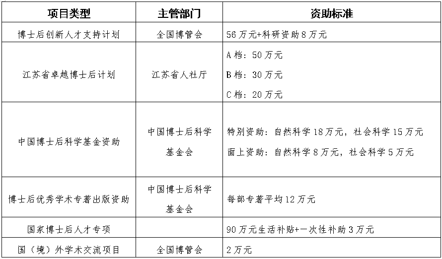 2.具有竞争力的薪酬:我院为博士后提供极具竞争力的薪酬待遇,其中紫金博士后基本年薪不低于25万元(税前),特别优秀的可达30万元。按在职人员享受成果转化收入分配、科研项目绩效、重大科研业绩奖励等。在站期间同时获得国家或者地方博士后人才项目支持,则在原薪酬基础之上叠加国家或者地方项目待遇。特别优秀者各类资助叠加年薪可达百万元。